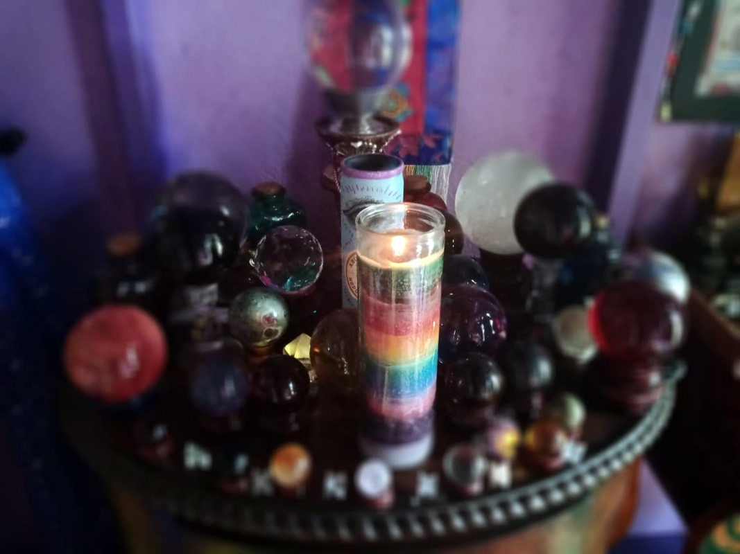 The Crystal Silence Shrine is an all-purpose altar that utilizes the amplifying powers of crystals to make a strong petition to spiritual beings. These Crystal spheres represent the collection of three generations of Crystal scryers. The large clear Crystal prominently displayed in the center belonged to the Reverend's great-grandmother. Many of the crystals were gifts from talented scryers and psychometrists from every corner of the world. Reverend Saint Germain will personalize the ceremony to meet your specific needs, and select the elements which will best serve your unique situation. This work may involve a mixture of ceremonial rootwork, candle vigils, sacred relics, and prayer to petition spiritual beings to rally to your cause. Depending on the type of ceremony, prayers may last 3 to 5 days. You will receive pictures of the work along with Reverend Saint Germain's observations and interpretations of any omens or signs that were seen during the ceremony.